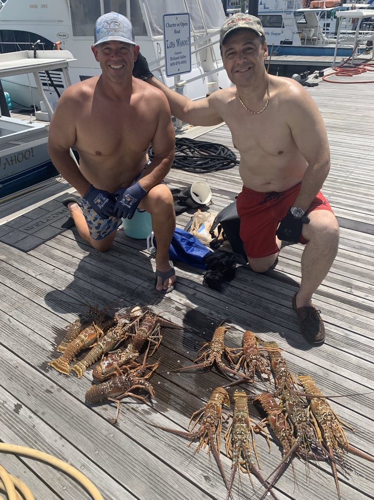 Double Ledges (90 fsw): Twin ledges that lie south of the inlet. Lots of marine life, and a good site for lobster hunters.